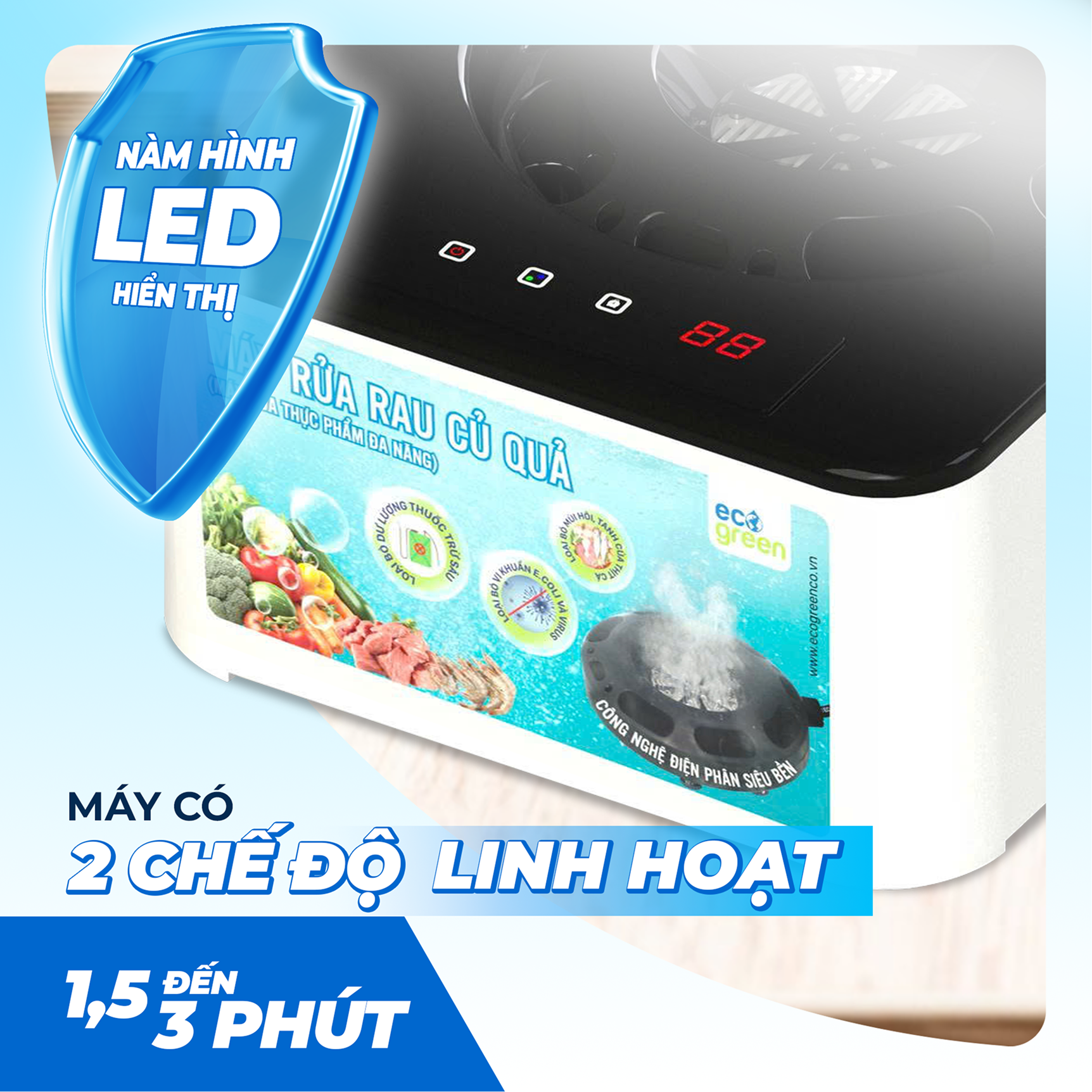 Máy rửa thực phẩm đa năng Eco Green ứng dụng công nghệ điện phân cực Titan phủ Platinum, tạo nước ion kiềm điện phân sâu, giúp làm sạch thực phẩm vượt trội so với các phương pháp rửa thông thường. Công nghệ này không chỉ loại bỏ chất bẩn mà còn tiêu diệt vi sinh vật gây hại, bảo vệ sức khỏe gia đình một cách toàn diện.